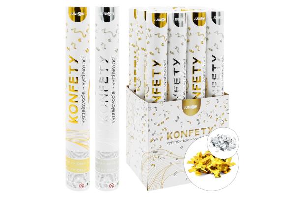 Střílející konfety - trubka 40 cm, mix - zlaté/stříbrné metalické obdélníky
