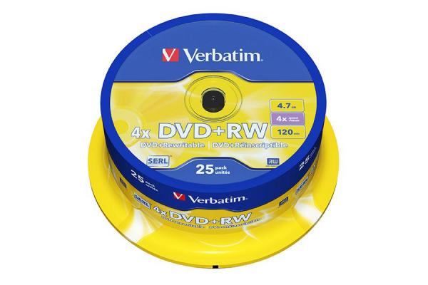 DVD +RW Verbatim 4,7GB, 4x, spindl 25ks
