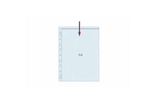 Průhledný lesklý obal, horní strana otevřená, extra pevný materiál PVC, euroděrování.