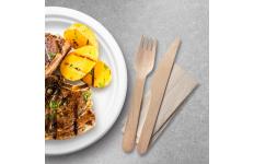Příborová sada (dřevo FSC 100%) nůž-vidlička+ubrousek [60 sad]