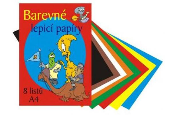 Papíry barevné složka A4, 8 listů - lepicí