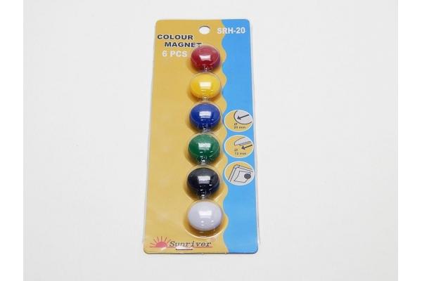 Magnety barevné 20 mm / 6 ks mix barev