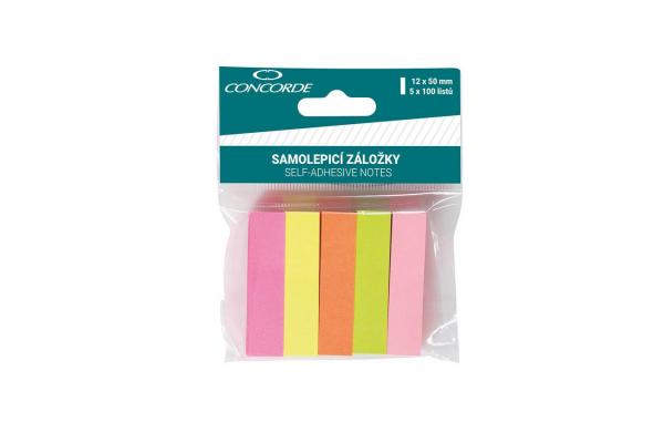 Záložky samolepicí papírové 12 x 50 mm/5 x 100 listů neon