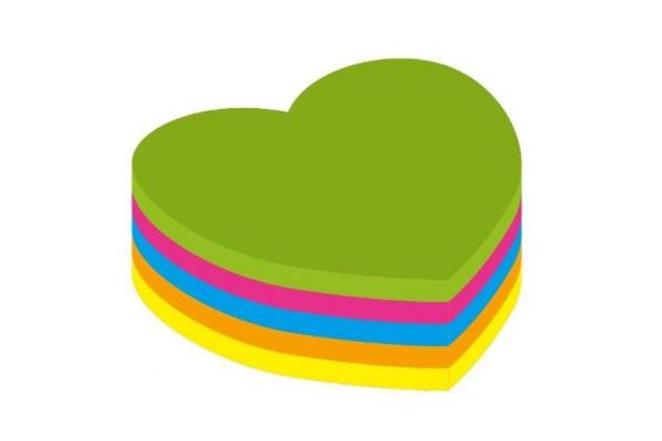 Blok samolepicí Kores neon 70 x 70 mm srdce/250 listů mix 5 barev