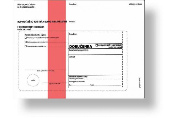 - Obálka s vytrhávací doručenkou a odtrhávacím poučením dle zákona č.500/2004 Sb.