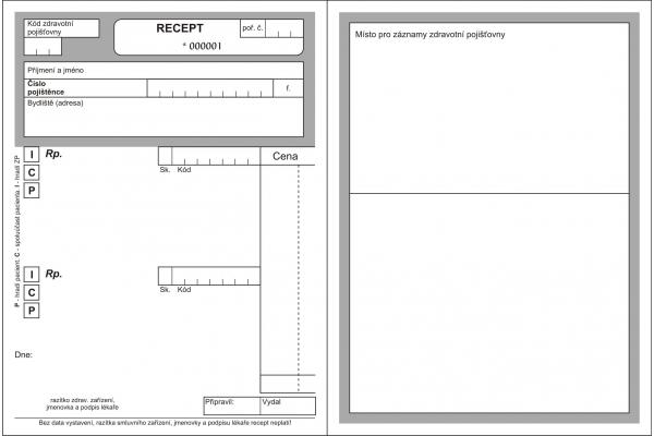 Lékařský recept A6, blok 100 L, nečíslovaný, starý typ