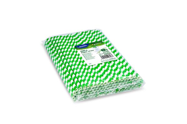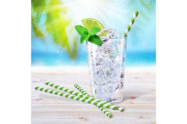 Slámka papírová Spirála zelená `JUMBO` Ø8mm x 25cm [100 ks]