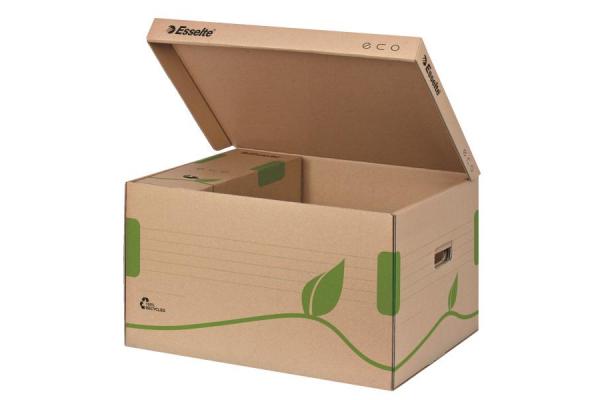 Archivační systém Esselte Eco nabízí funkční krabice navržené se zeleným přístupem. Krabice jsou 100% recyklovatelné s 85% podílem spotřebitelského odpadu a certifikovány FSC. Velikost krabic je optimalizována pouze na papíry A4 s cílem minimalizovat odpad při výrobě.