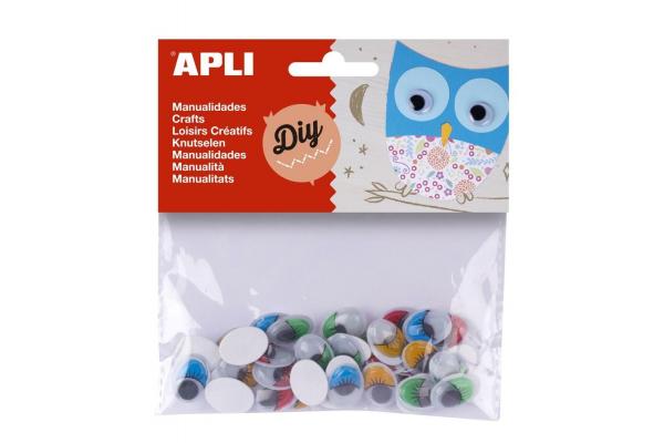 Oči APLI samolepicí oválné barevné s řasami 16x12 mm/40 ks
