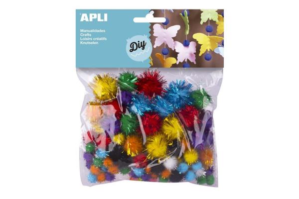 Pom pom APLI se třpytkami mix velikostí a barev/78 ks