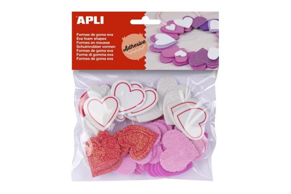Pěnovka APLI tvarová samol. třpytky srdce metal./52 ks