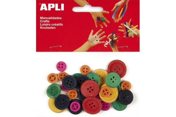 Knoflíky dřevěné APLI barevný mix průměr 11, 18 a 21 mm/30 ks